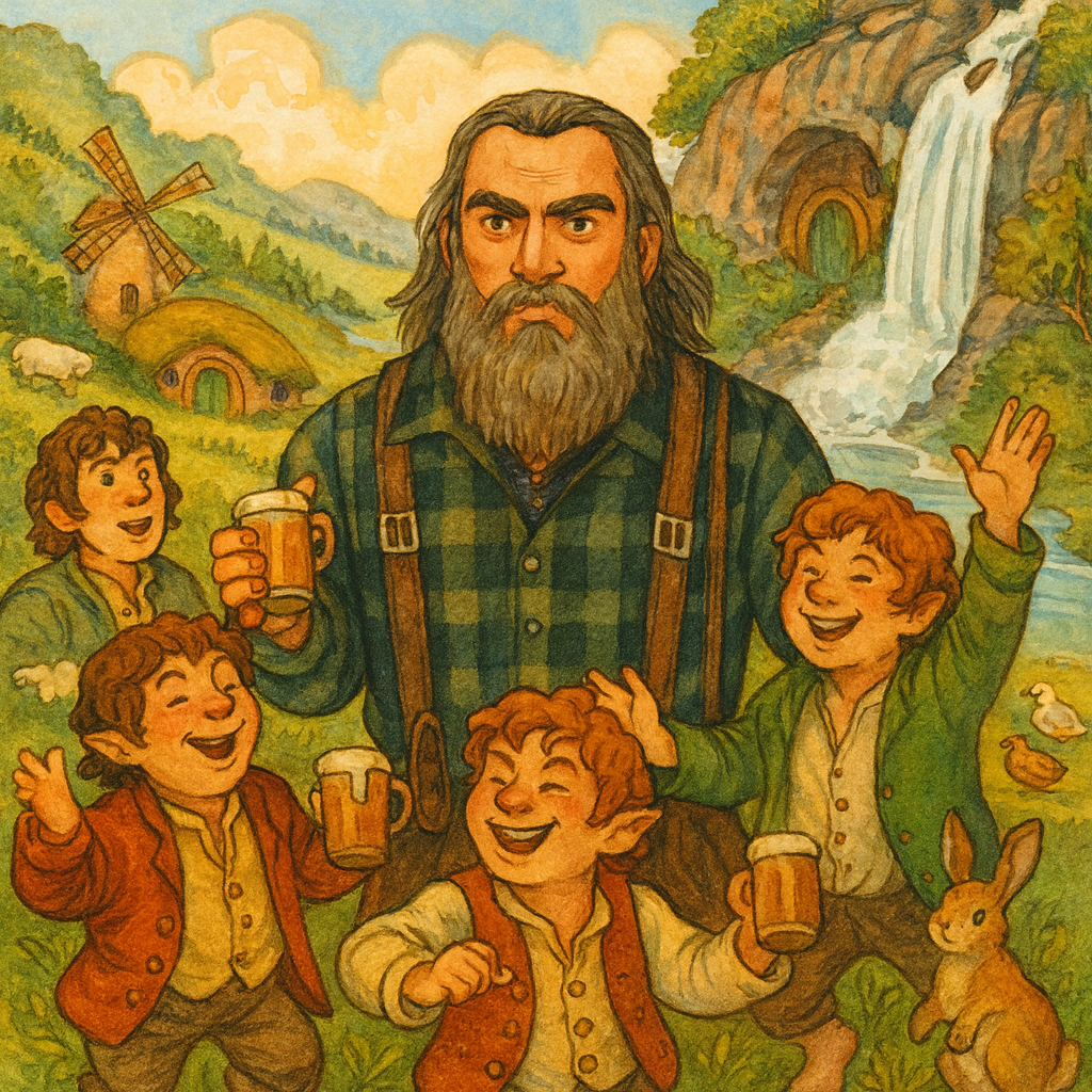 His solitary journey is interrupted by a cry for help. A hobbit, cornered by goblins, faces a grim fate until a roar breaks the company of evil. It is in this simple act of protection that John Bear’s fate begins to turn. He is invited to the hobbit village of Lyndelby, not as a warrior, but as a friend.